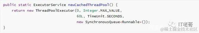 Executors.newCachedThreadPool:核心线程数为0,最大线程数为Integer.MAX_VALUE,是一个高度可伸缩的线程池。存在OOM风险。keepAliveTime为60,工作线程处于空闲状态超过keepAliveTime会回收线程。