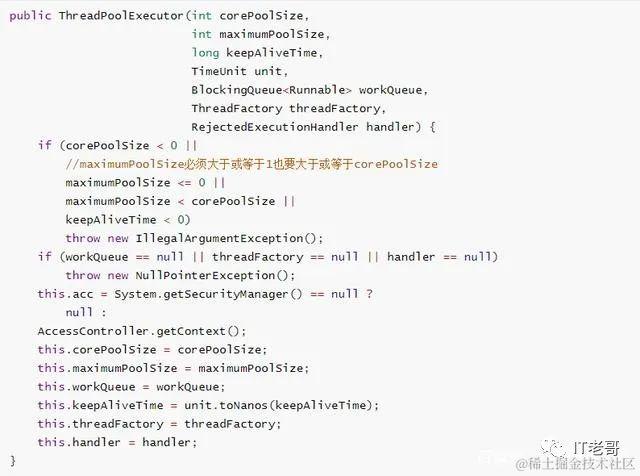 JDK中提供了创建线程池的类,大家首先想到的一定是Executors类,没错,可以通过Executors类来创建线程池,但是不推荐(原因后面会分析)。Executors类只是个静态工厂,提供创建线程池的几个静态方法(内部屏蔽了线程池参数配置细节),而真正的线程池类是ThreadPoolExecutor。ThreadPoolExecutor构造方法如下: