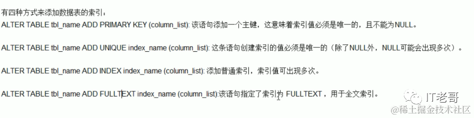 删除:DROP INDEX [indexName] ON mytable;