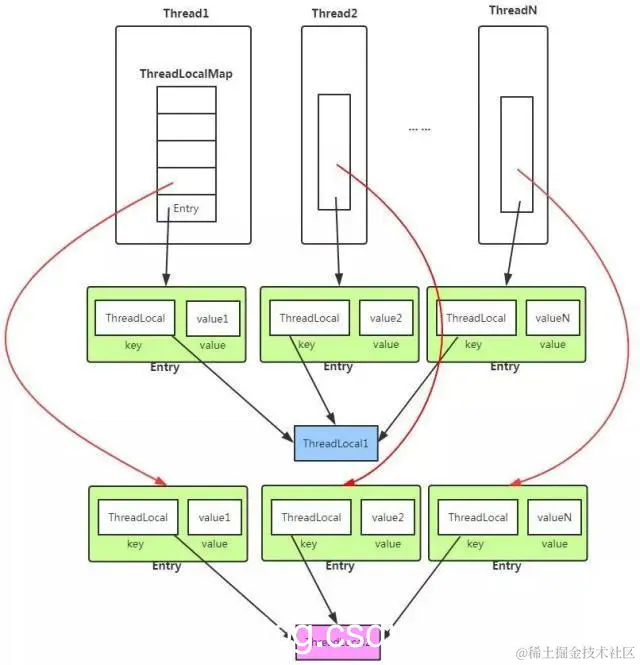 ThreadLocal内部有一个非常重要的内部类:ThreadLocalMap,该类才是真正实现线程隔离机制的关键,ThreadLocalMap内部结构类似于map,由键值对key和value组成一个Entry,key为ThreadLocal本身,value是对应的线程变量副本