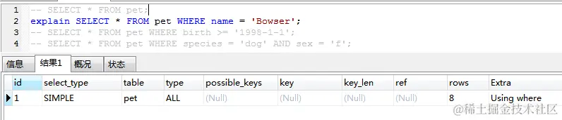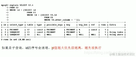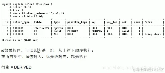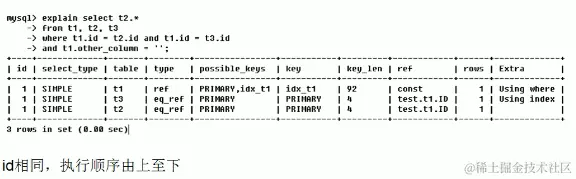 举个不太恰当的例子,EXPLAIN SELECT * from t1 , t2 where t1.id = t2.id