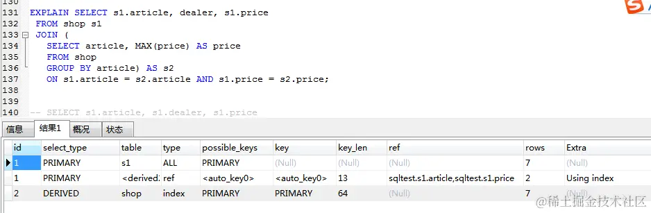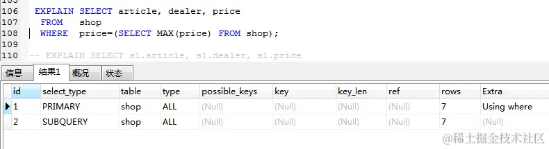 如果 SQL 语句中包含任何子查询,那么子查询的最外层会被标记为 primary