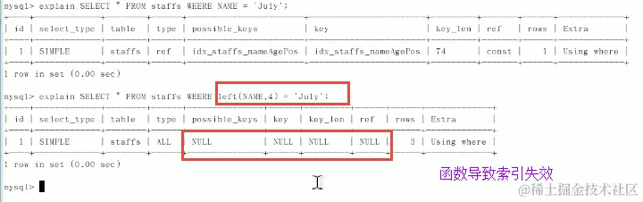 以下用法会导致索引失效