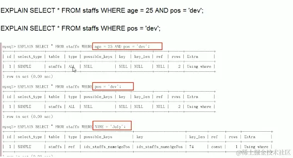 ALTER TABLE staffs ADD INDEX idx_staffs_nameAgePos(name, age, pos);