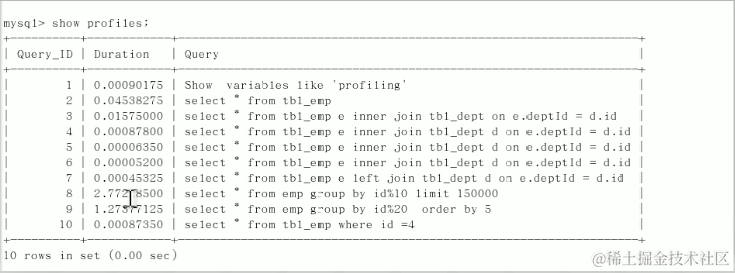 show profiles;会出现如下结果 - 分析以上截图某一条