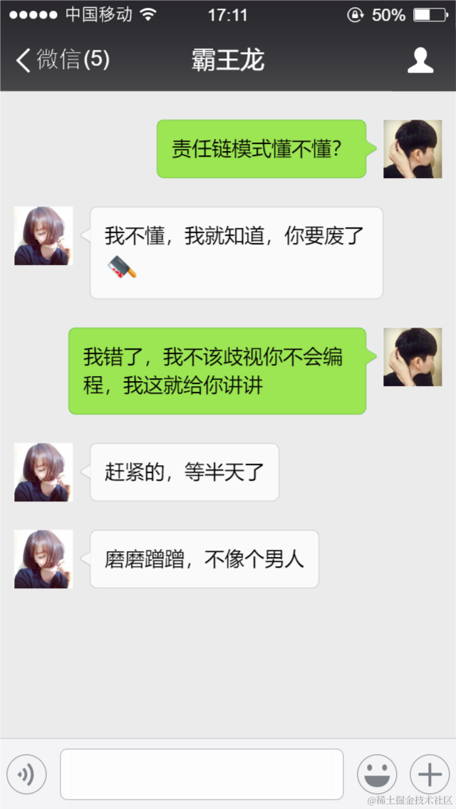 原来生宝宝如此简单,哈哈,一个责任链设计模式搞定,如果你也是负责任的男人,不会责任链设计模式好意思吗?