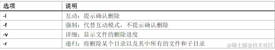 - rm -f file1 删除一个叫做 ‘file1’ 的文件’