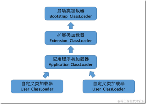 它是一个抽象类,其后所有的类加载器继承自 ClassLoader(不包括启动类加载器)