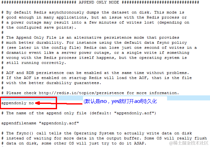 即:在redis.conf文件里配置,截图上的改成appendonly yes。