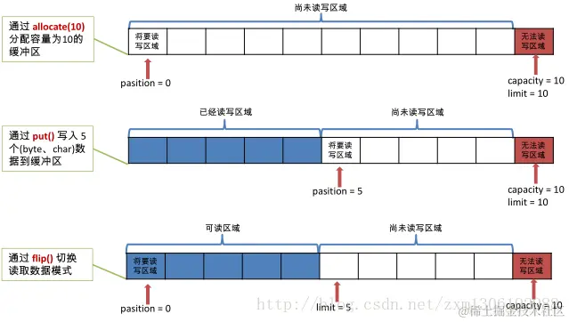 * position:位置,表示缓冲区中正在操作数据的位置。