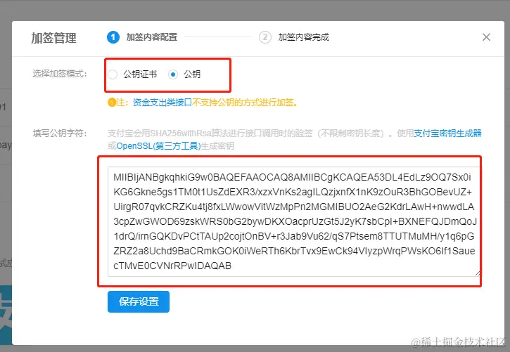 保存会生成一个支付宝的公钥,这个公钥用于后续的支付宝支付后的回调验签使用