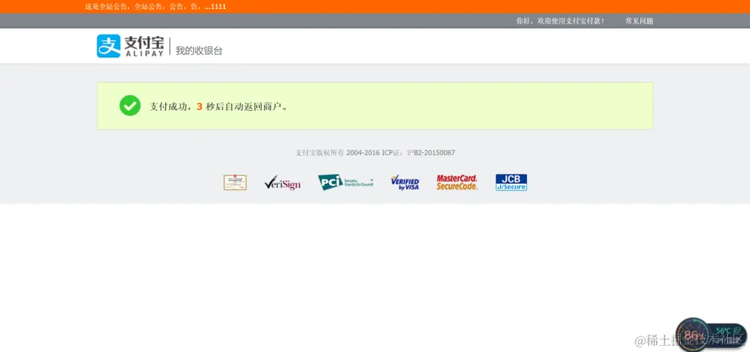# 页面跳转同步通知页面路径 需http://格式的完整路径,不能加?id=123这类自定义参数