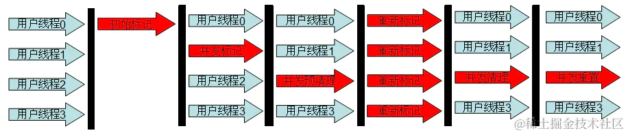 普通CMS老年代回收过程如下图所示。
