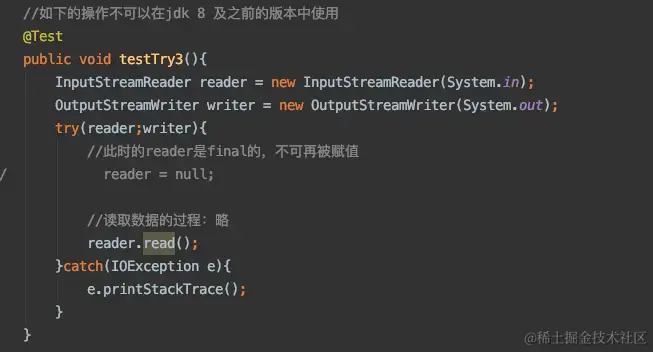 再来看看java8里面的代码,需要把实例化的过程放到入口参数中,看起来简单了很多