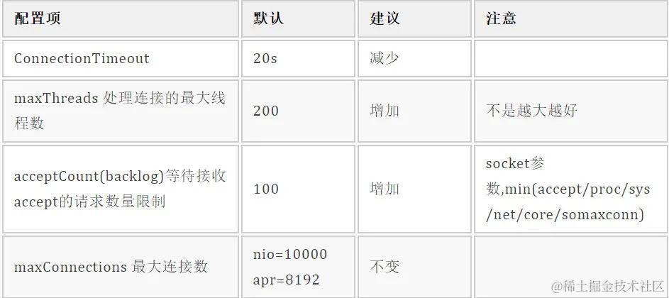 对于tomcat参数调优不能靠经验猜测,需要通过不断调试,才能找出合适应用程序的合理配置