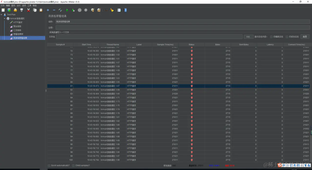吞吐量为1秒处理5个左右,异常请求达到60个