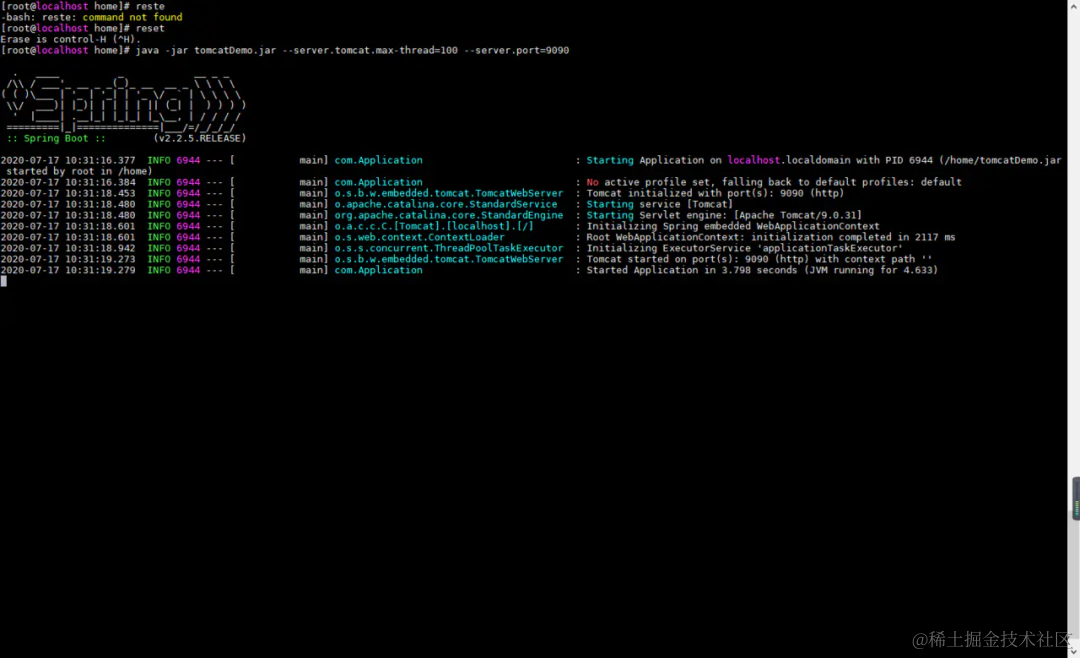 java -jar tomcatDemo.jar --server.tomcat.max-thread=100 --server.port=9090