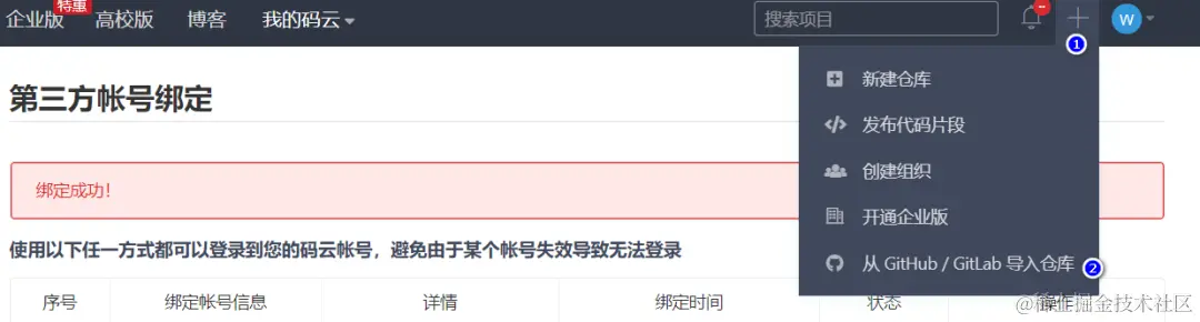 访问 gitee 网站:gitee.com/ 并登录,在顶部选择“从 GitHub/GitLab 导入仓库” 如下: