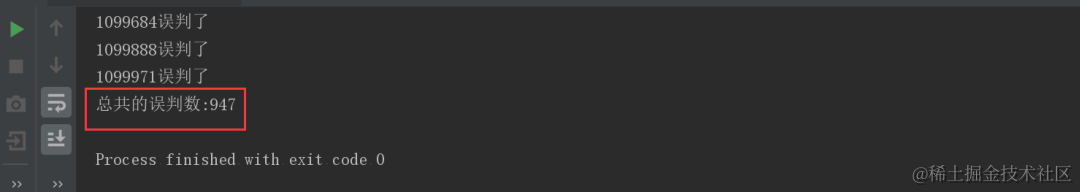 System.out.println("总共的误判数:" + count);