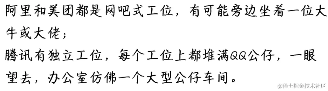 今天,就来带大家对比一下在阿里、腾讯、美团这三家大厂工作的区别,给即将毕业或准备跳槽的小伙伴作为参考。