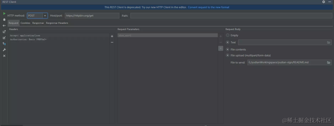 - IDEA REST Client的请求配置可以用文件配置描述,所以可以跟随项目和项目成员共享