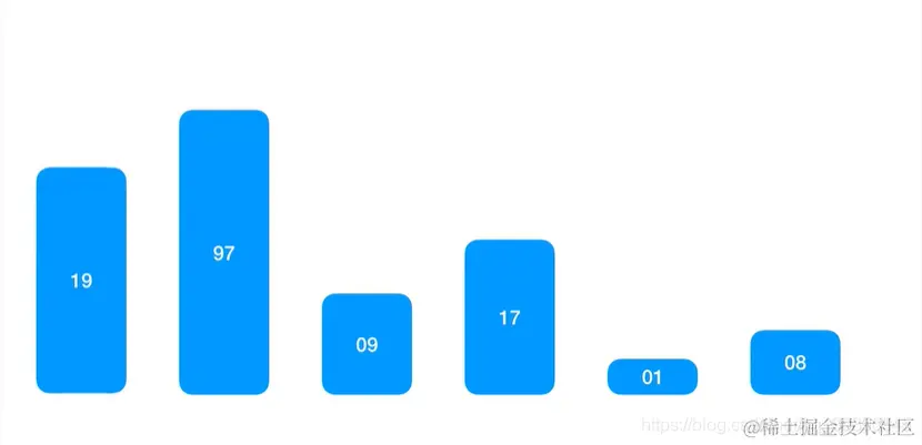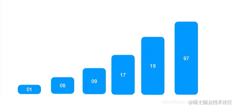 11.继续对左、右子序列递归进行处理,一直缩小到左、右都是一个值,则快速排序结束,最终得出顺序数组{1,8,9,17,19,97};中间递归流程这里不再赘述。