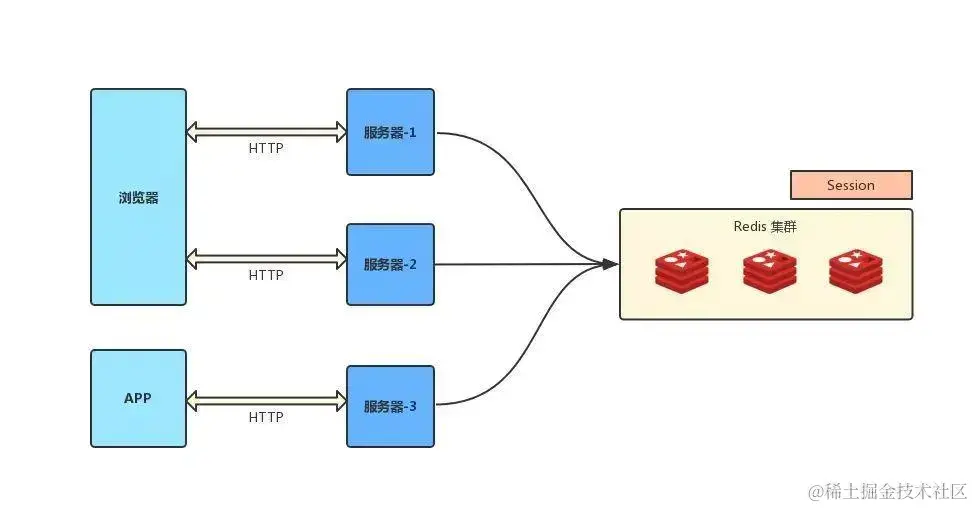 - 不仅可以跨服务器 session 共享,甚至可以跨平台(例如网页端和 APP 端)