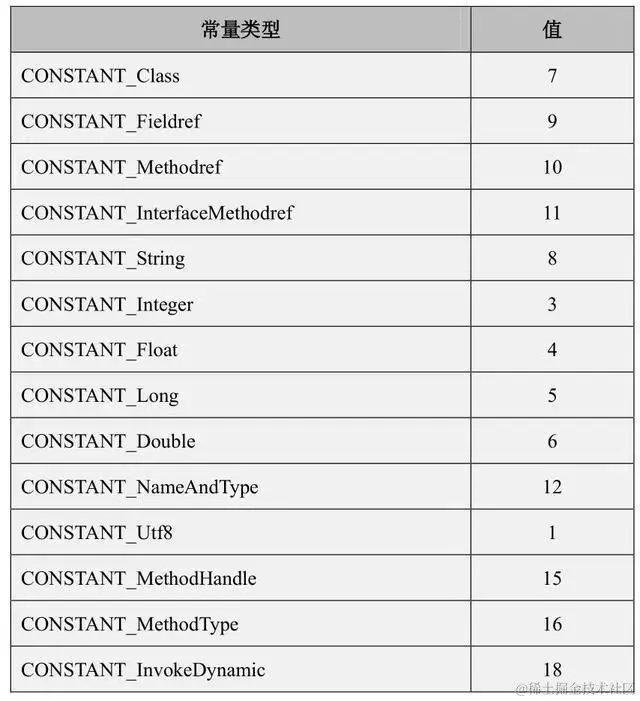 java虚拟机规范手册常量类型表