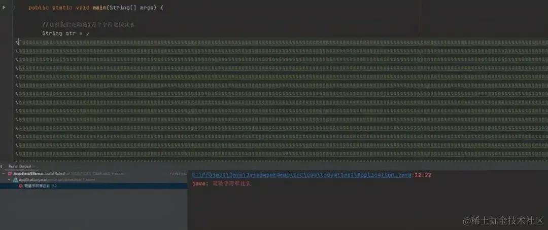 以上是我通过定义字面量的形式构造的10万个字符的字符串,编译之后虚拟机提示报错,说我们的字符串长度过长,不是说好了可以存21亿个吗?为什么才10万个就报错了呢?