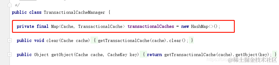 所以属性TransactionalCacheManager肯定就是用来管理二级缓存的,我们再进去看看TransactionalCacheManager对象是如何管理缓存的: