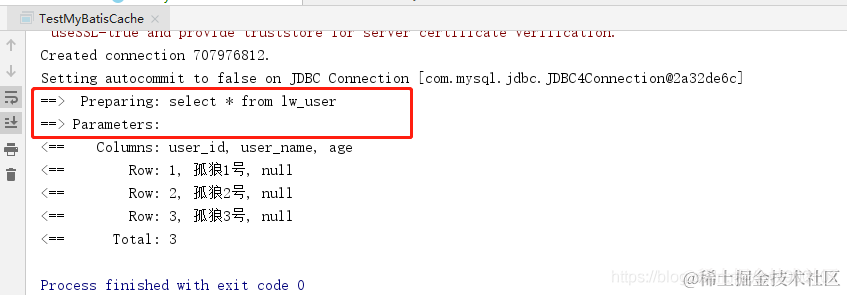 上面输出结果中只输出了一次sql,说明用到了缓存,而因为我们是跨会话的,所以肯定就是二级缓存生效了。