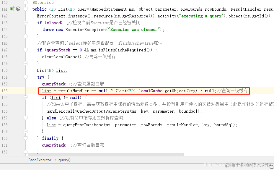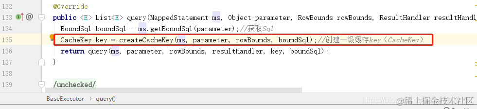 既然缓存那么肯定是针对的查询语句,一级缓存的创建就是在BaseExecutor中的query方法内创建的: