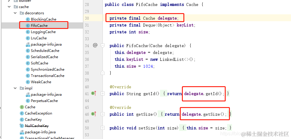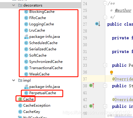 其本身都需要依赖Cache的唯一实现类PerpetualCache,因为装饰器内需要传入Cache对象,故而只能传入PerpetualCache对象,因为接口是无法直接new出来传进去的。