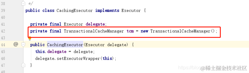 我们看到CachingExecutor中只有2个属性,第1个属性不用说了,因为CachingExecutor本身就是Executor的包装器。