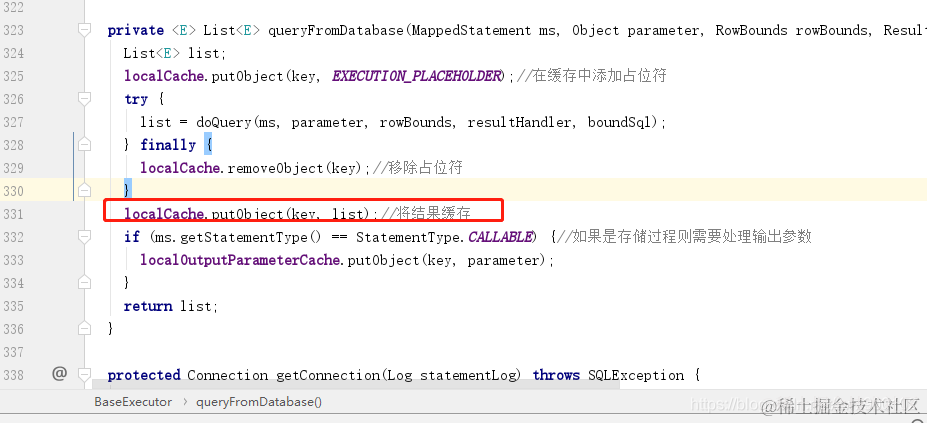 queryFromDatabase方法中会将查询得到的结果存储到localCache中