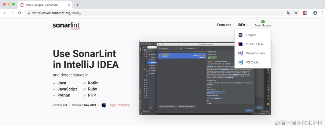 SonarLint是一个代码质量检测插件,可以帮助我们检测出代码中的坏味道