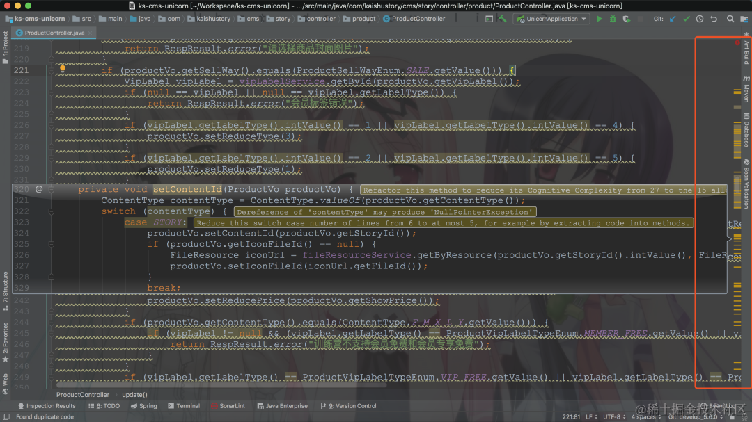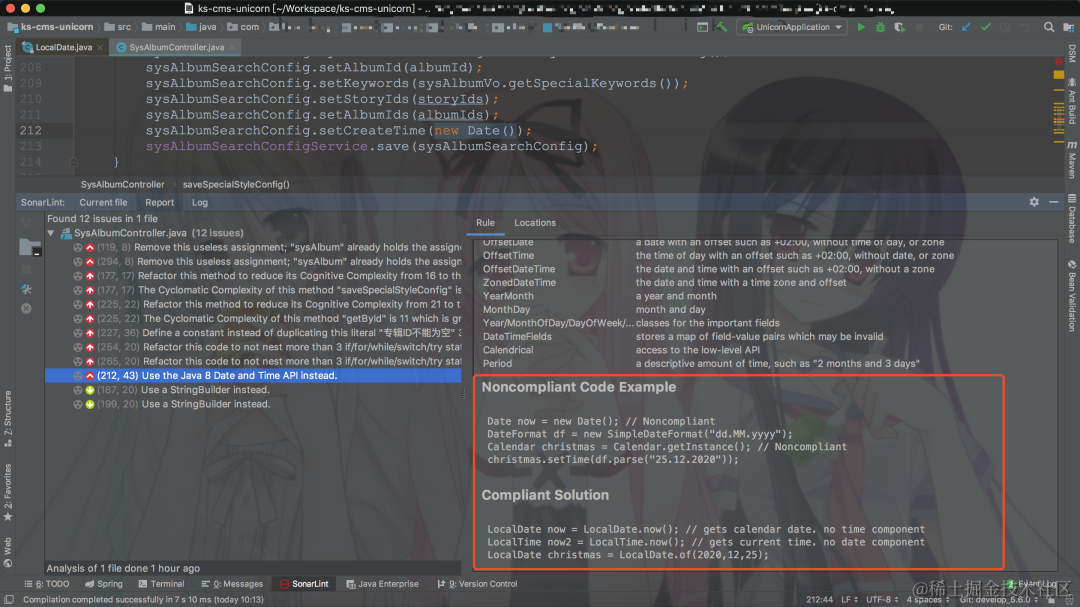 比如,对于日期类型尽量用LocalDate、LocalTime、LocalDateTime,还有重复代码、潜在的空指针异常、循环嵌套等等问题