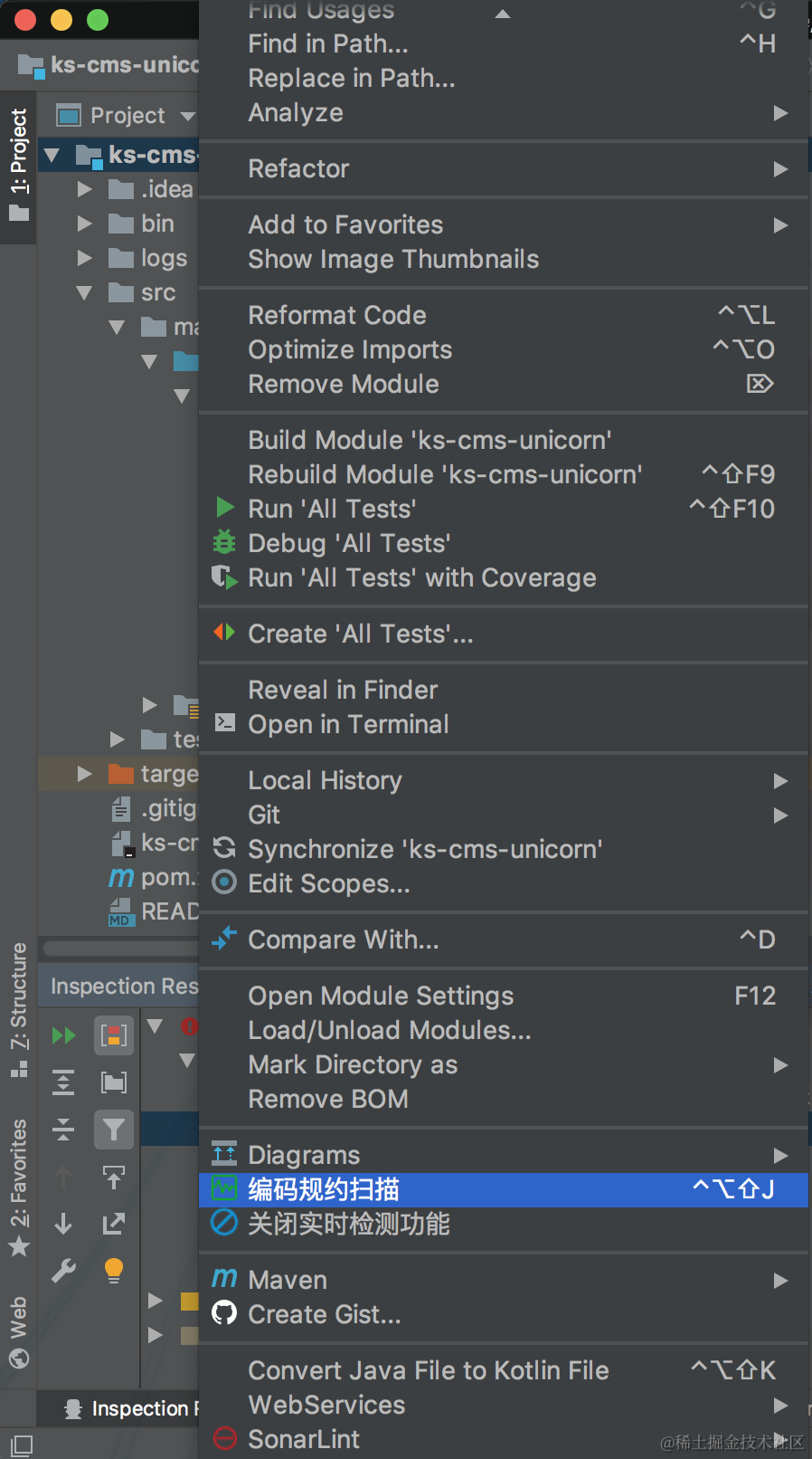或者选中文件或目录,点击菜单栏 Analyze --> Analyze with SonarLint