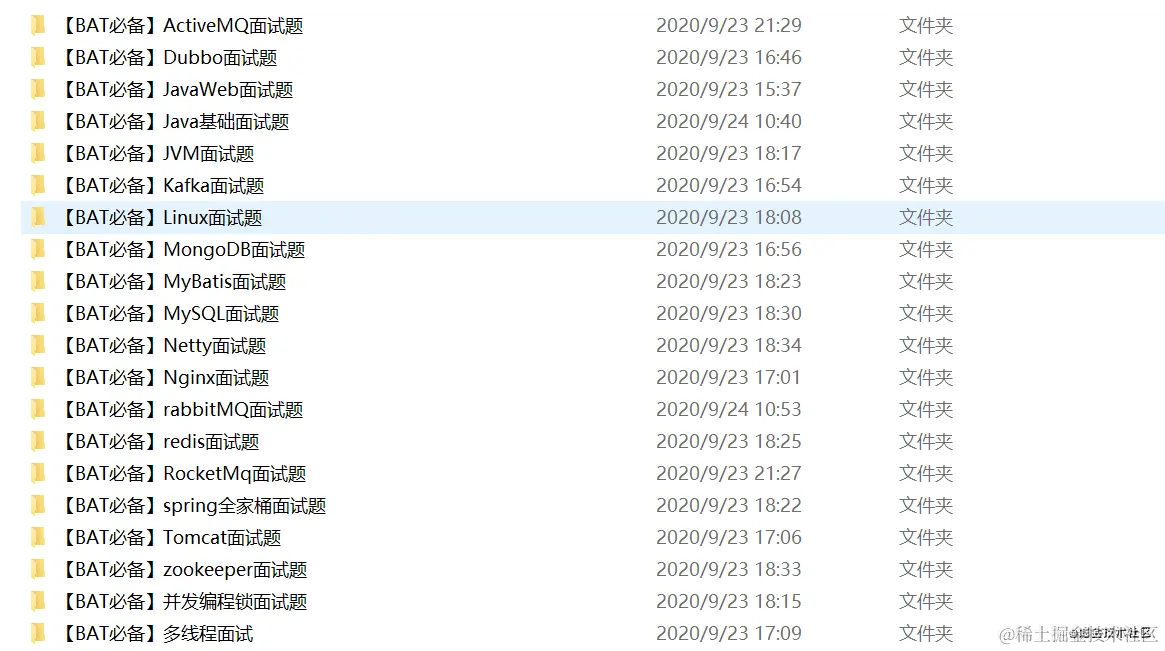 老哥这里为大家整理了2020年最新BAT面试题,包含java各个技术领域,非常全面,共80多个PDF文档。