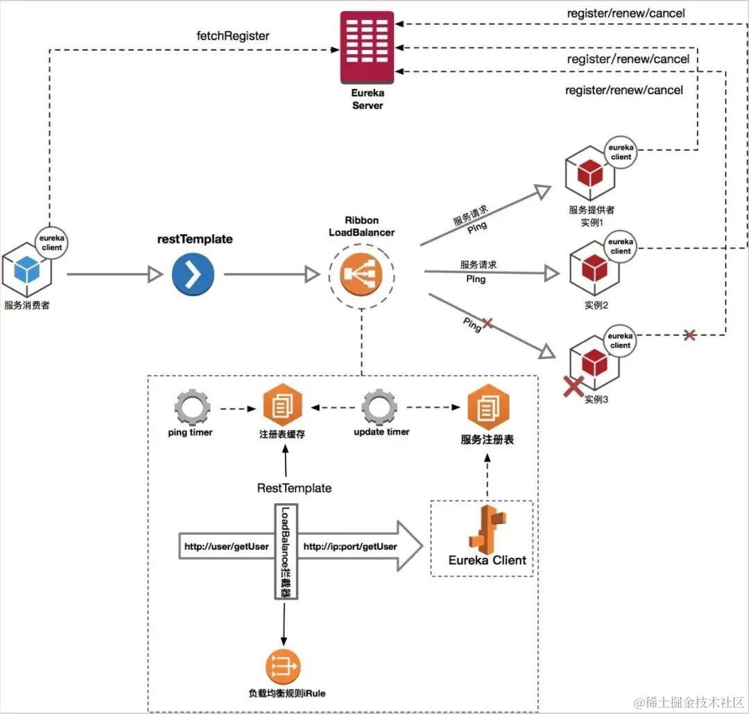 因此, Eureka可以很好的应对因网络故障导致部分节点失去联系的情况,而不会像ZooKeeper那样使整个注册服务瘫痪。