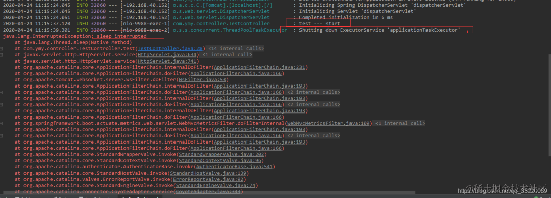 test — end被执行了,不过在停止线程池的时候还是调用了线程的interrupt方法,导致sleep报错,这三种方式都可以比较优雅的停止springboot服务,如果我项目中存在线程休眠,我希望10秒以后再停止服务可以吗?肯定是可以的,我们只需要稍微做点修改就可以了。