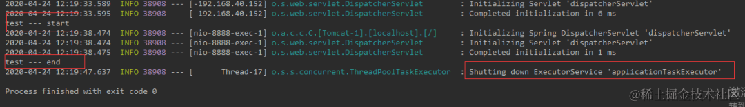 2020-04-24 10:54:02.450 INFO 14086 --- [extShutdownHook] o.s.s.concurrent.ThreadPoolTaskExecutor : Shutting down ExecutorService 'applicationTaskExecutor'