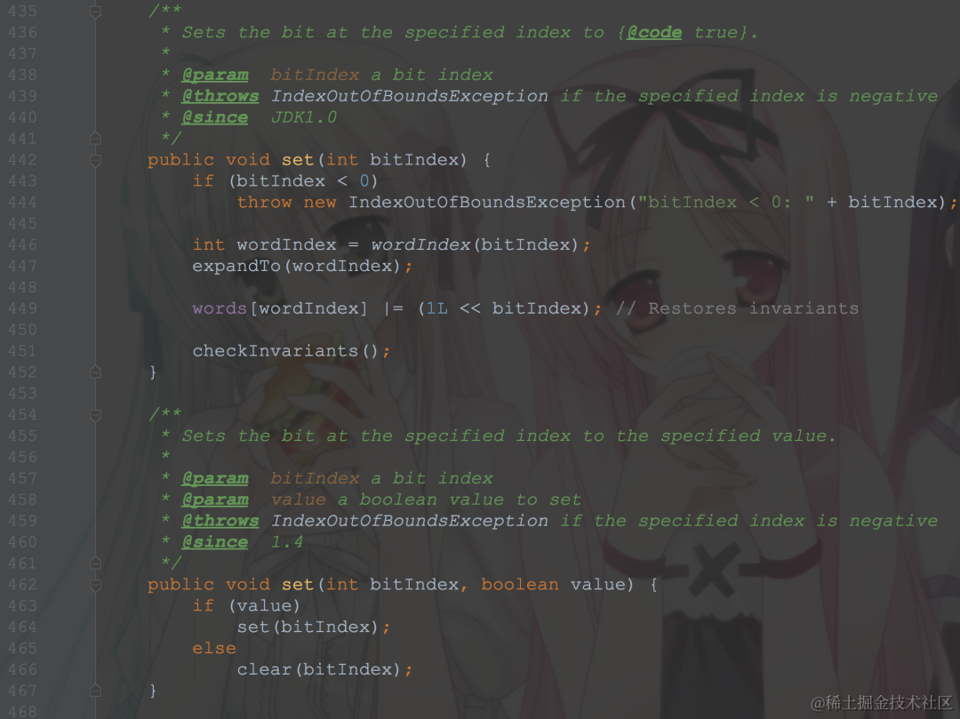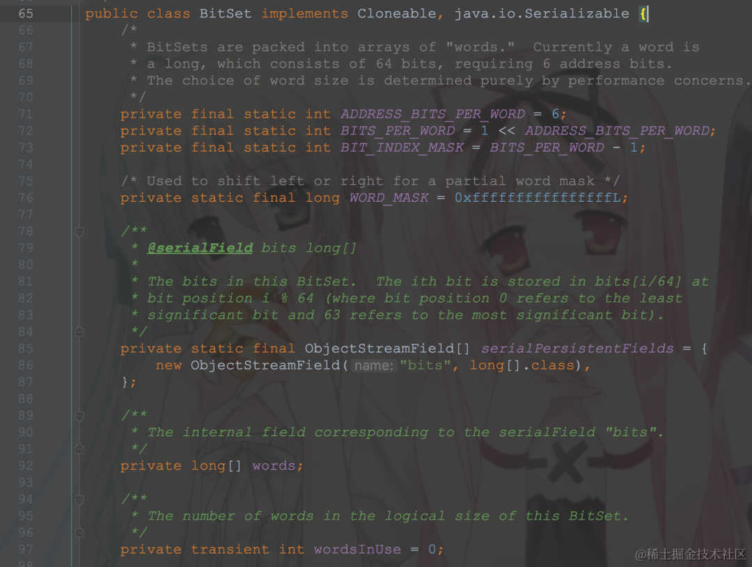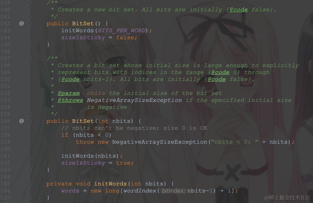 BitSet实现了一个位向量,它可以根据需要增长。每一位都有一个布尔值。一个BitSet的位可以被非负整数索引(PS:意思就是每一位都可以表示一个非负整数)。可以查找、设置、清除某一位。通过逻辑运算符可以修改另一个BitSet的内容。默认情况下,所有的位都有一个默认值false。