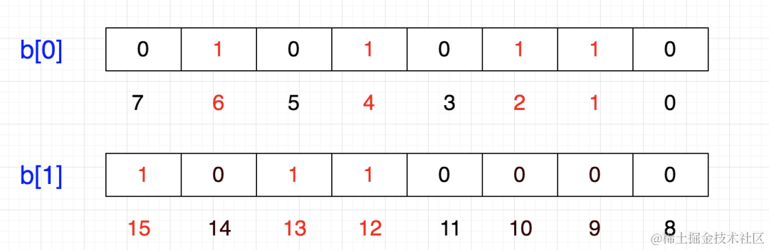 假设,我们想知道3在不在,那么只需判断 b[0] & (1<<3) 如果这个值是0,则不存在,如果是1,就表示存在