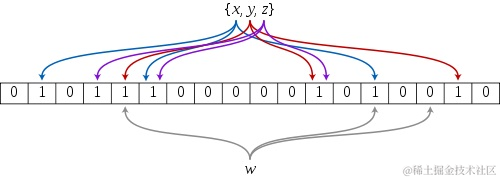 Bloom filter 的基础数据结构是一个 比特向量(可理解为数组)。