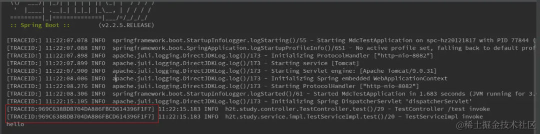 - 修改日志配置文件 在原来的日志格式中 添加traceId的占位符