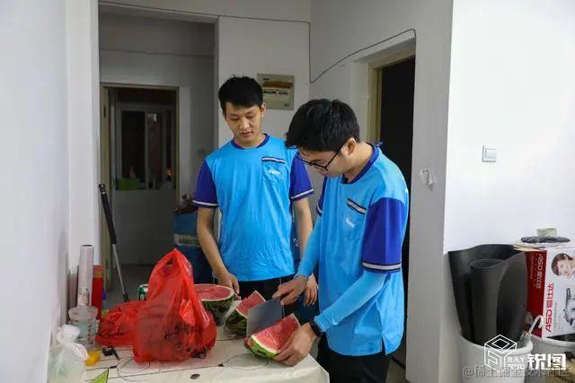 晚上,张贤建回到家中,与同是蓝骑士的室友吃起了西瓜,这是他们难得的休息时光。吃完西瓜,全职外卖员的室友又要出去继续跑单,张贤建一般会选择看看书,继续写代码。