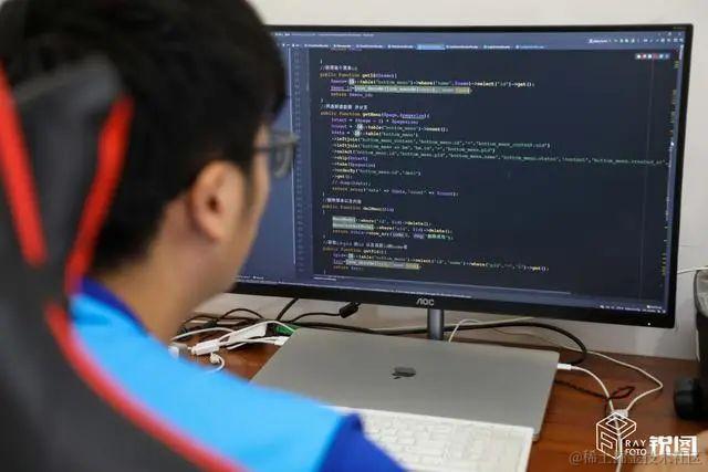 在安徽合肥一个小区门口,一位年轻的外卖员从身后的双肩包里拿出了一台笔记本电脑,开始熟练地写起了代码。