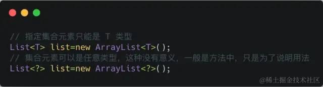 所以,对于不确定或者不关心实际要操作的类型,可以使用无限制通配符(尖括号里一个问号,即 <?> ),表示可以持有任何类型。像 countLegs 方法中,限定了上届,但是不关心具体类型是什么,所以对于传入的 Animal 的所有子类都可以支持,并且不会报错。而 countLegs1 就不行。