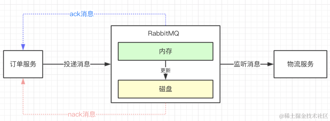 (1)消息生产者把消息发送给MQ,如果接收成功,MQ会返回一个ack消息给生产者;